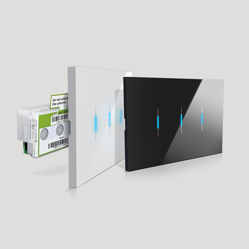 Switch GE3-XX-L3 is module SW-L3. Built with a decorative panel PNL-GE-WH-3 (white) or PNL-GE-BK-3 (black). For installation details, tutorial videos, and many other options for the smart switch click on the link – SW-L3.