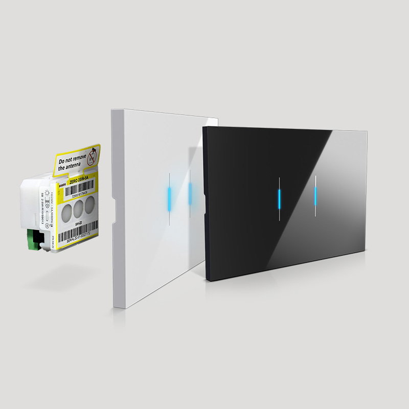 Switch GE2-XX-Z2 is module SW-Z2. Built with a decorative panel PNL-GE-WH-2 (white) or PNL-GE-BK-2 (black). For installation details, tutorial videos, and many other options for the smart switch click on the link – SW-Z2.