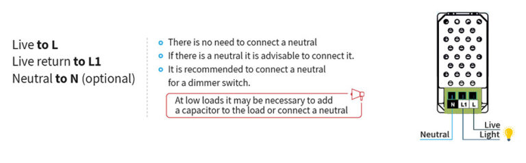 This smart switch is designed for one light. With a small size of 1 gang (23mm), it can be installed without changing the infrastructure, or rewiring, and does not require a neutral wire. Each gang can be set to turn on/off, dimming, a variety of scenarios, and a timed switch (for example in a stairwell). The switch has a current sensor which protects the switch from overload. It also measures the current consumption of the switch. The switch optimally turns on the lighting with zero-cross technology, thus preserving and extending the life of the lamps.